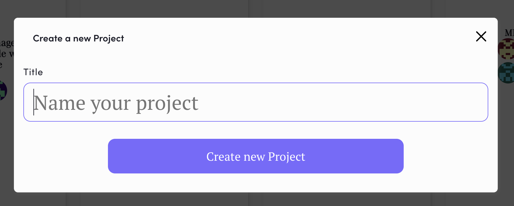 For the sake of this quick start guide, go ahead and create one, giving it a name of your choice. You could opt for something like ‘My First Project’ or ‘Tutorial.‘